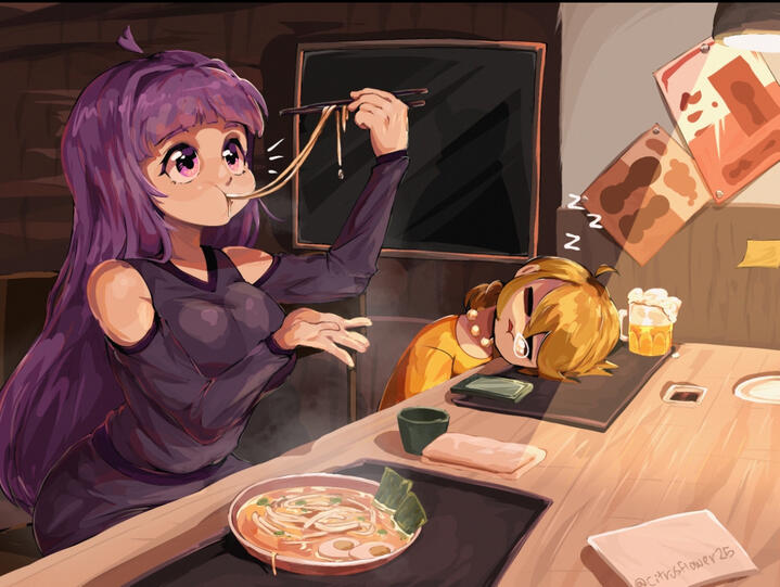 Through Twitter dms, Kofi DMs, or if we’re friends. Through discord!-Can I request art from you?